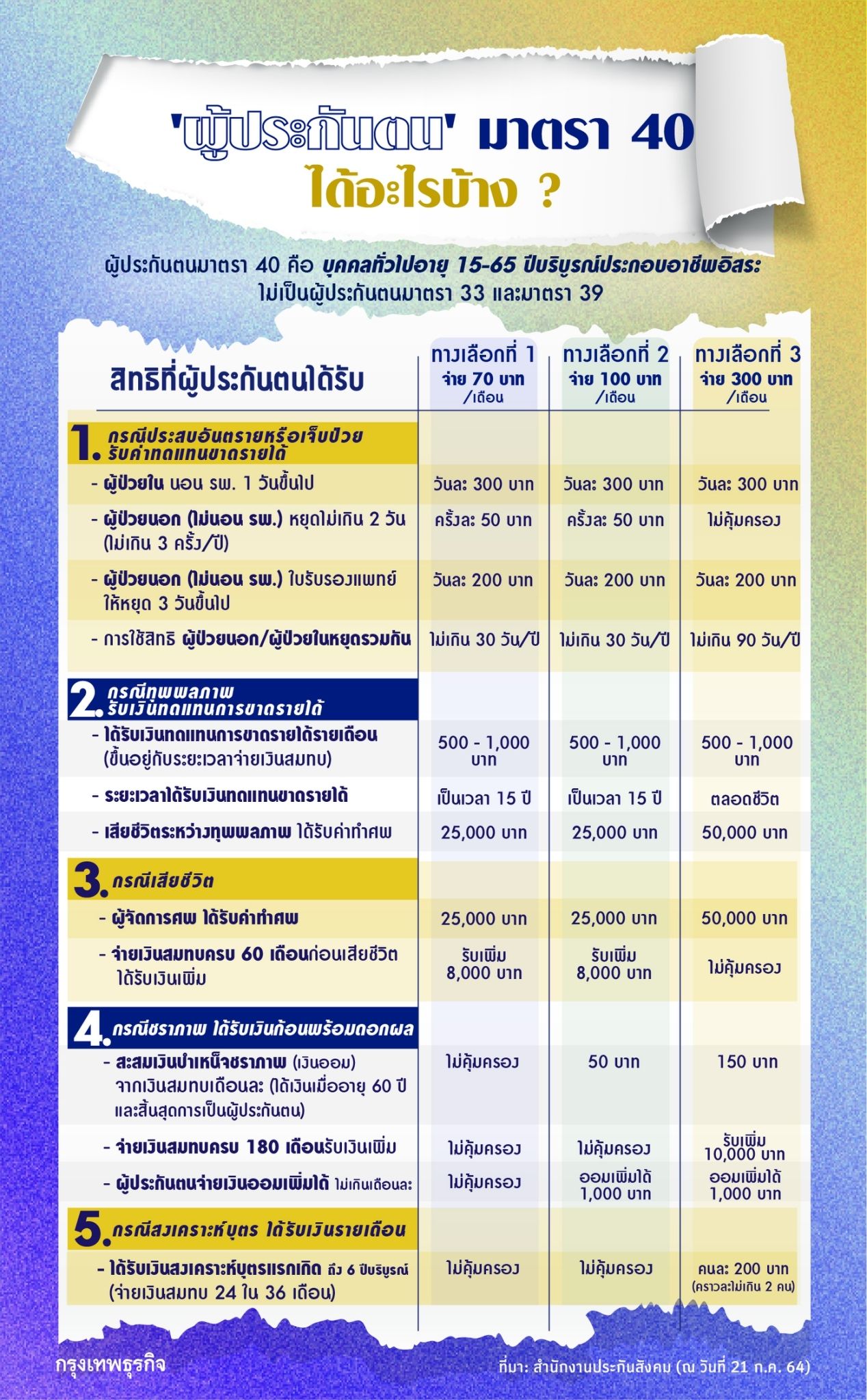 ประก นส งคมมาตรา 40 สม ครเป นผ ประก นตนได ถ งว นไหนร บเง น 5